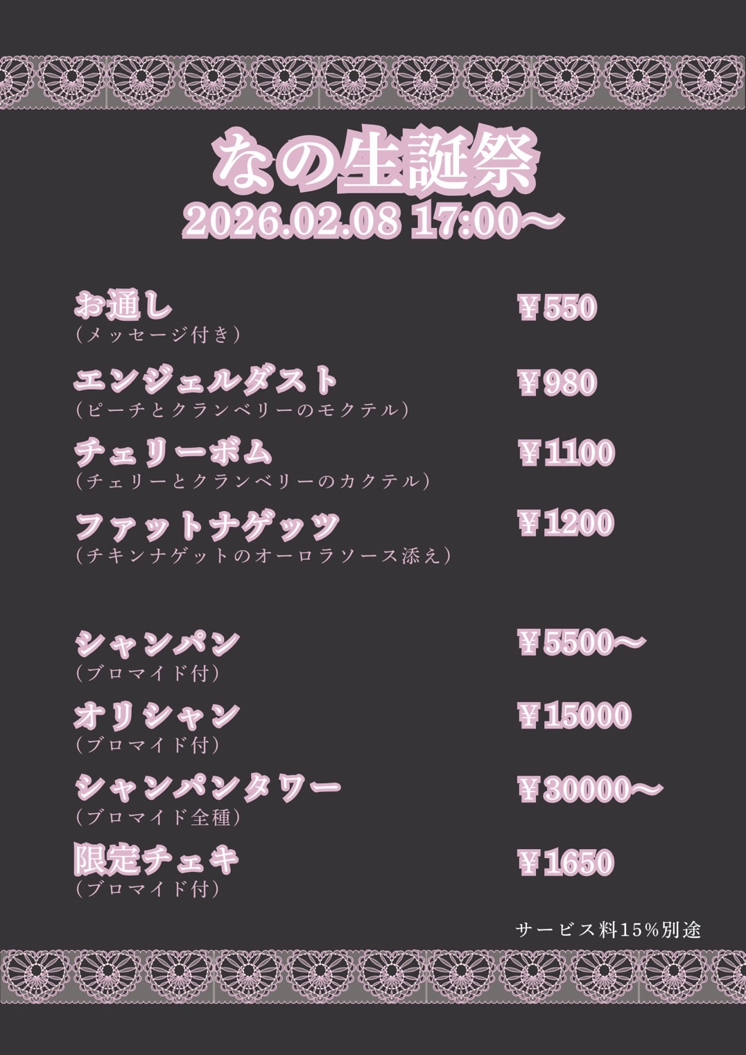8日(日)なのちゃん生誕祭 22日(日)ねねちゃん生誕祭 シャンパン予約でお席予約可